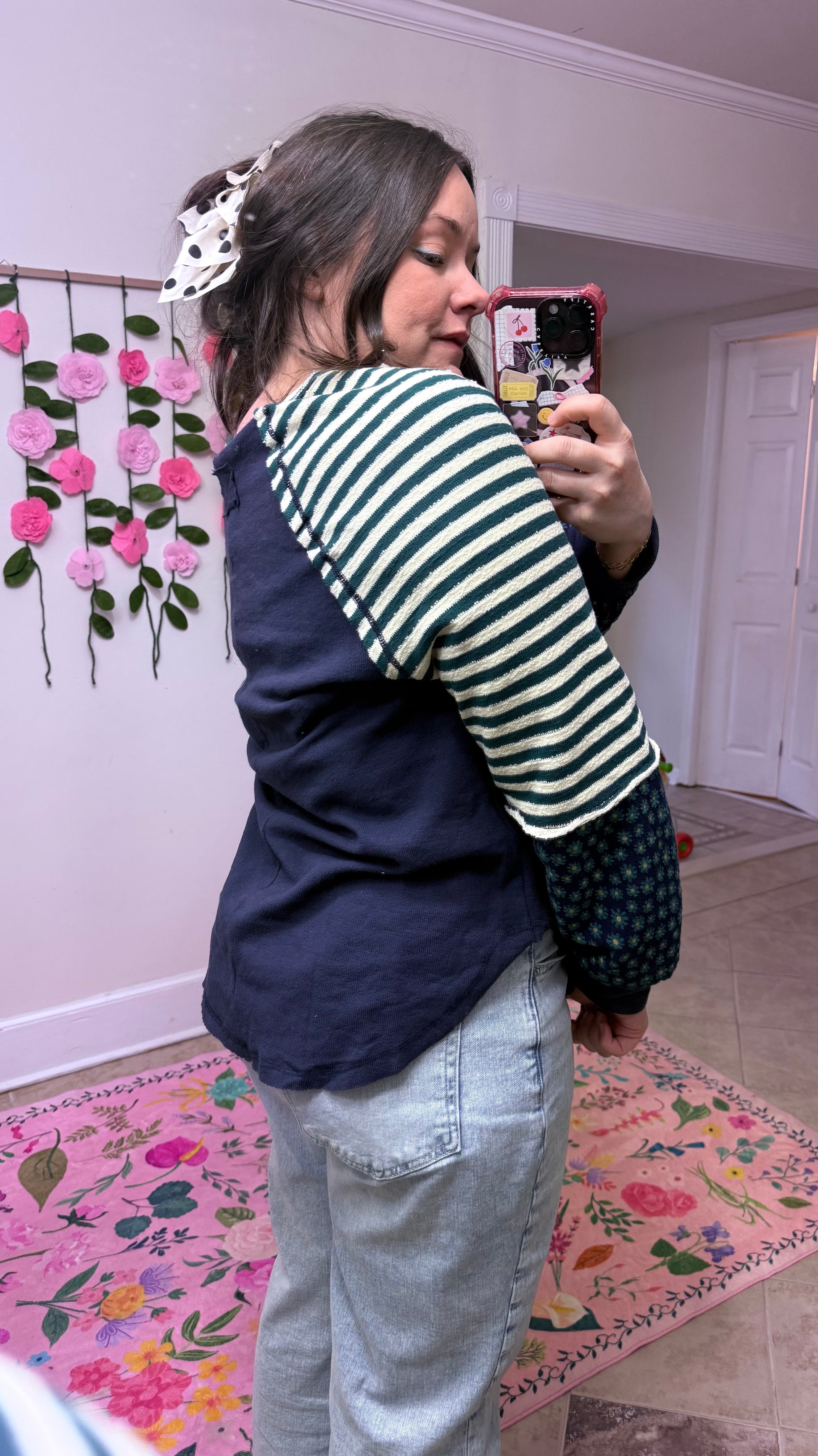 โจ Mixed floral & stripe sleeves