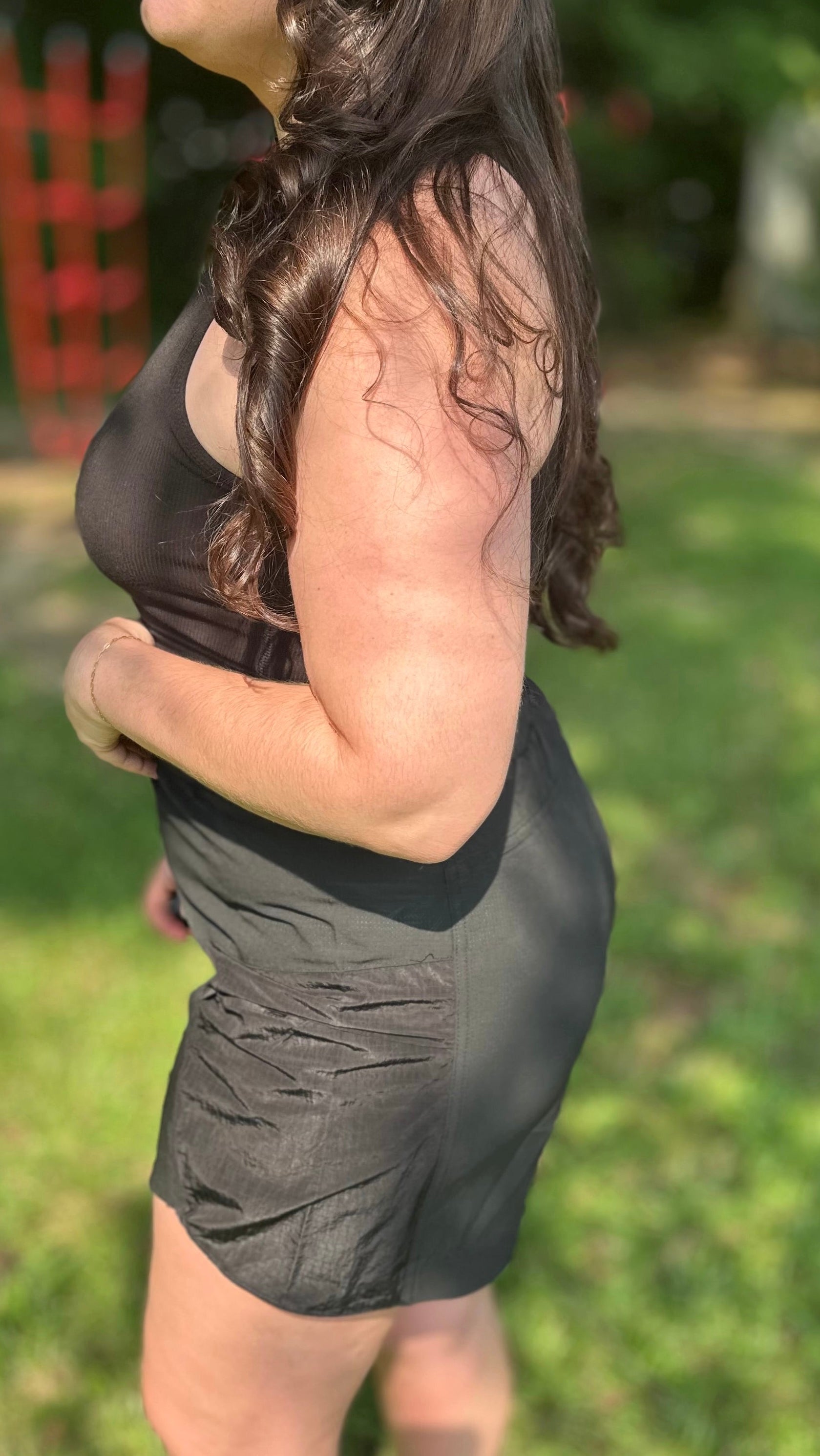 The Off-Duty Cargo Shorts feature an elastic waistband with drawstring, contrast side pockets, and a lightweight, breathable fabric perfect for errands, walks, and everything in between. A sporty, comfy staple you’ll reach for on repeat.