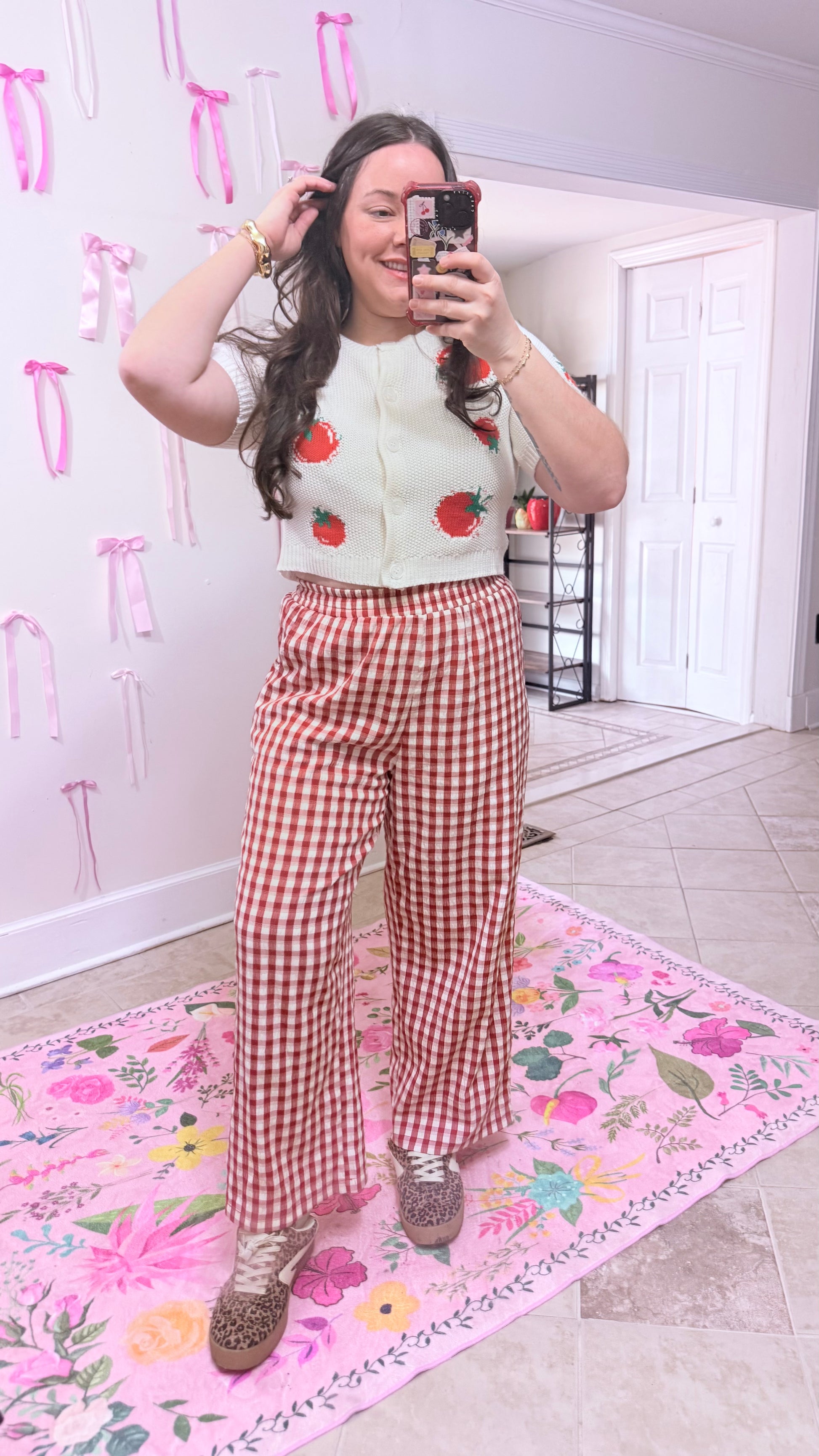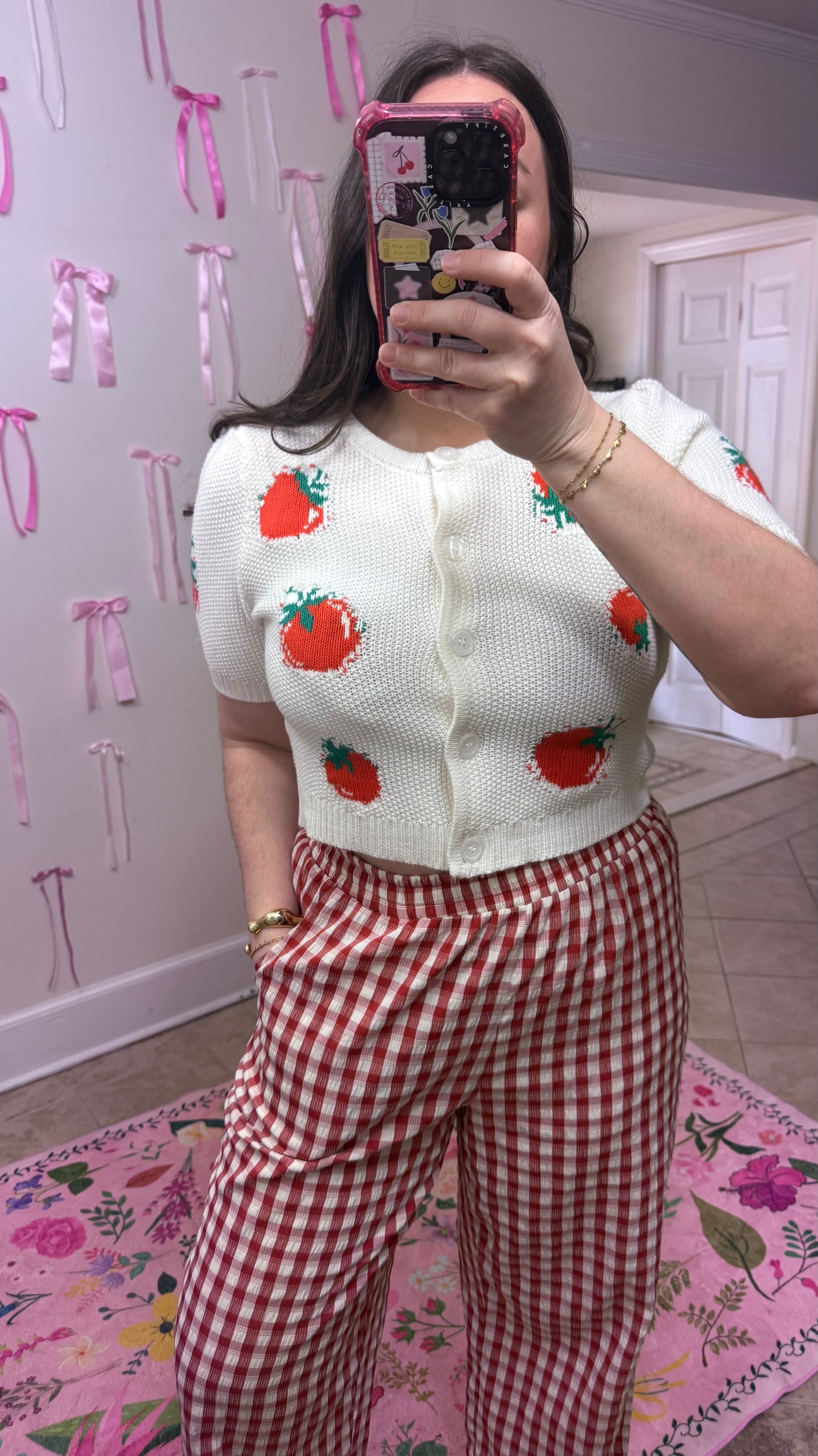 Playful and boutique-cute, the Fresh Pick Tomato Cardigan features a fun tomato jacquard design with a cropped button-down silhouette for an easy, flattering fit. The lightweight knit blend (60% cotton, 40% acrylic) feels soft and breathable, making it perfect for layering through spring and summer. A cheerful statement piece that adds farmers-market charm and personality to any outfit.