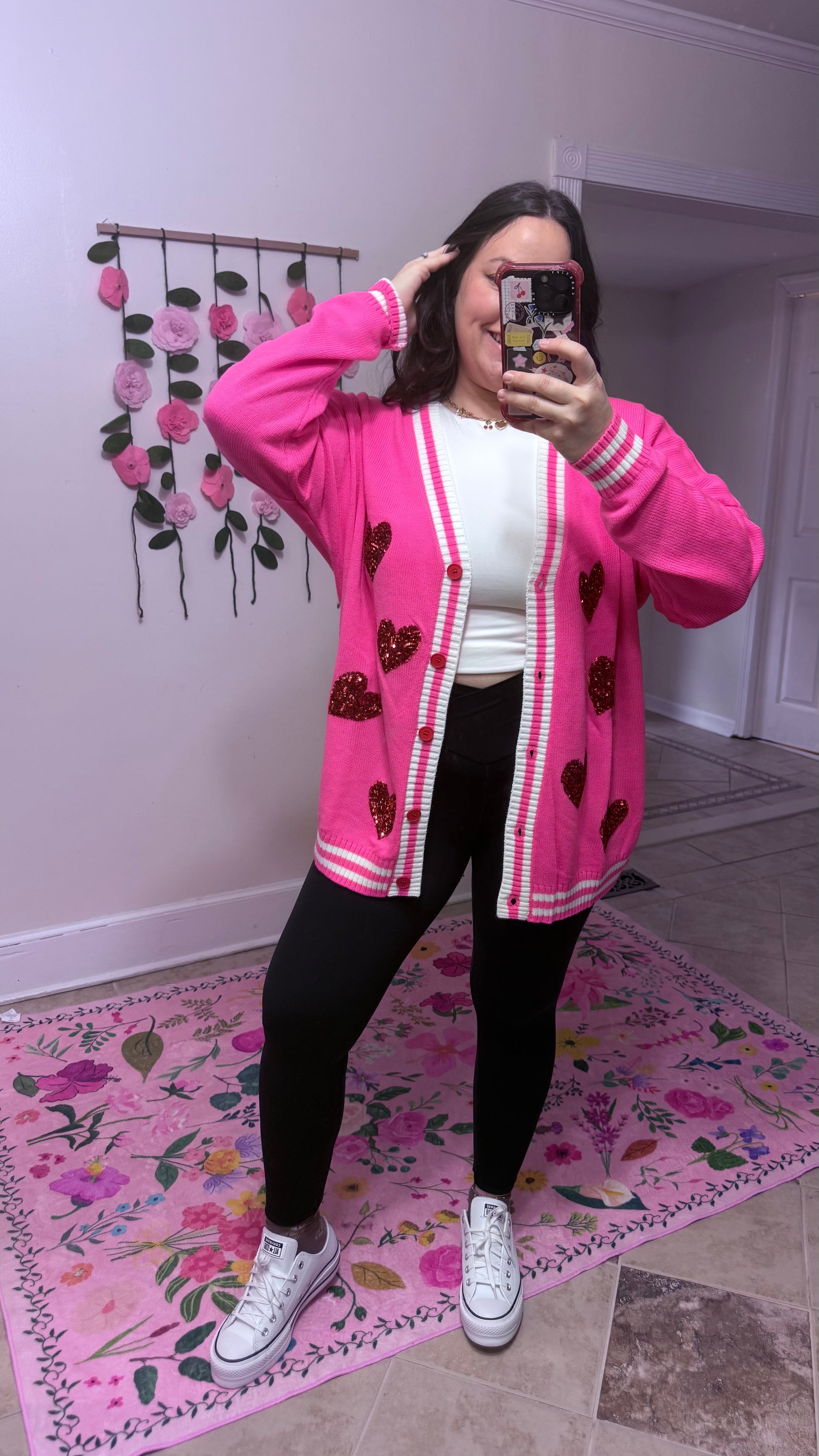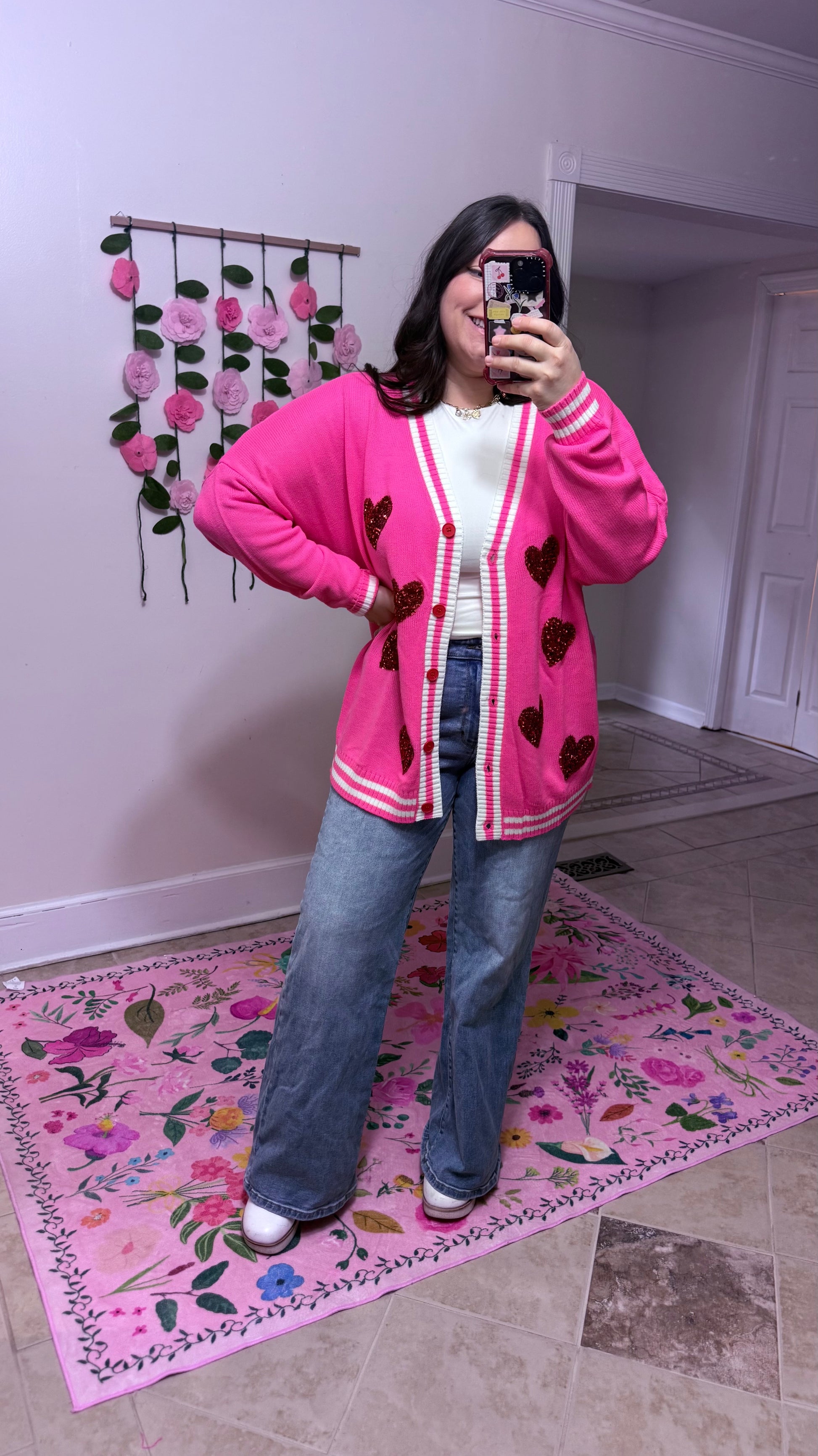 Happy Heart Sequin Cardi – Pink Valentine Cardigan