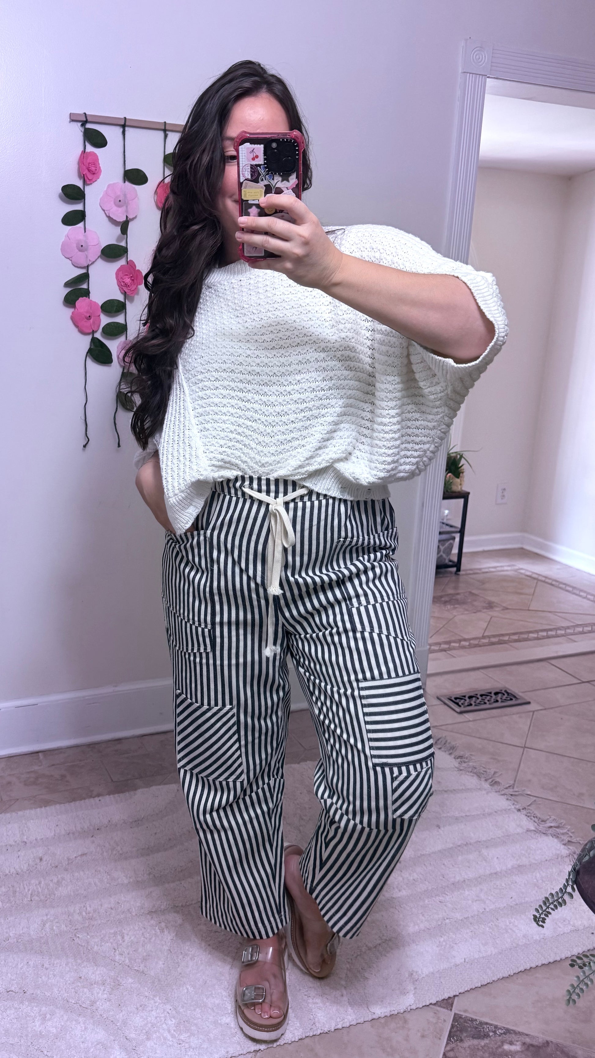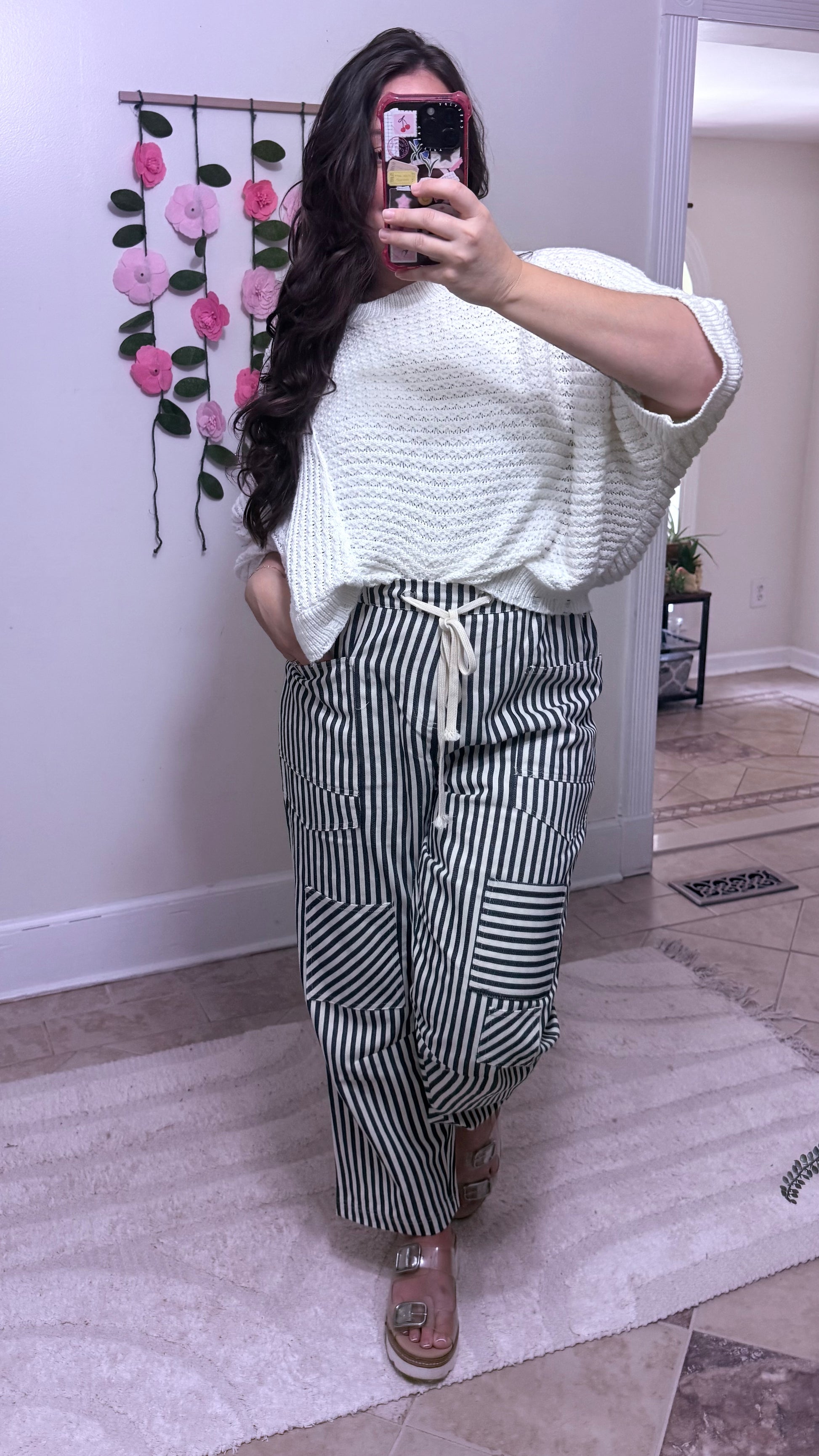 The Easy Stripes Pant is your new go-to for laid-back chic. Made with breathable striped twill fabric and playful patchwork details, these cropped barrel-leg pants are as comfy as they are stylish. Designed with a drawstring waist for the perfect fit and roomy pockets for everyday function, they’re an effortless pick for coffee runs, beach strolls, or casual weekends.